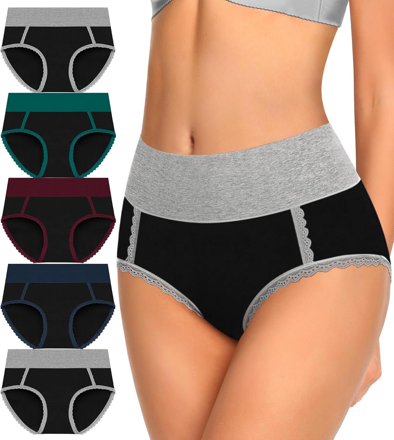 - STRETCHY FABRIC COVERED WAISTBAND: Full coverage high waisted underwear, Soft stretchy double-layer fabric covered waistband that stays in place at the waist. No rolling or bunching, no too tight or loose.Reduce the appearance of muffin top and make you more charming