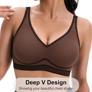 Wireless Sports Bras for Women Supportive Medium Impact Push Up Workout Bras No Underwire Deep V Padded Yoga Bra